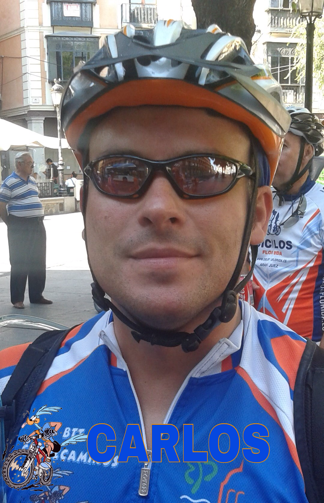 Carlos: Es un clásico de los Correcaminos, estamos hablando de uno de los componentes que más tiempo lleva y el que propuso el nombre del grupo. Posee un dominio excepcional de la bici, los senderos y las fuertes bajadas son su pasión, respetuoso de las normas de tráfico, no sabe lo que es saltarse un semáforo en rojo. Aunque se tire un tiempo sin salir recupera la forma rápidamente. Sube bien y sobre todo en las bajadas suele sacar ventaja. Por eso cuando ve una cuesta abajo se tira por ella. Aliado del medio ambiente. El mundo del ciclismo sin Carlos dejaría mucho que desear.