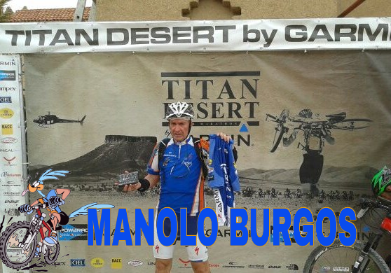 Manuel Burgos: “Mabur”. Referente de los apasionados de la bicicleta en Aranjuez. El Titán del grupo. Sus gestas en las diferentes pruebas tanto nacionales como internacionales así lo testifican. Capaz de terminar un sábado una ruta de 400 Km. y el domingo estar a las 9 en la plaza para realizar otros 100. Pero lo mejor no es eso, lo mejor de él es su humildad para enseñar su sabiduría en estas lides y ayudar en todo momento a aquel que más lo necesite. Conocedor de todos los caminos y senderos de la zona a la perfección. Amante empedernido del ciclismo tanto de montaña como de carretera. Suele estar con Tomas a cola de pelotón ayudando y dando ánimos a los más rezagados. Maestro que siempre da consejos e incita a superarse. Un monstruo.